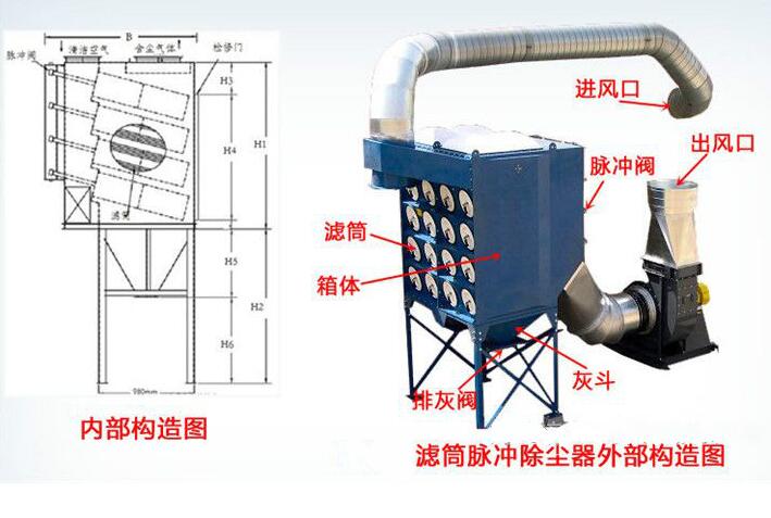 濾筒除塵器又稱工業脈沖濾筒除塵器,規格支持定制也可以和其他環保設備搭配使用,可以在車間,鑄造廠,化工,建材等領域使用。